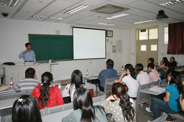 2010年9月24日下午3点到5点,在研究生教学楼303室,我校兼职教授、中国社科院语言所研究员、《当代语言学》杂志副主编胡建华教授为我校外国语学院教师和全体研究生做了语言学前沿讲座。本讲座为外国语学院为庆祝我校七十周年校庆举办的学术讲座。