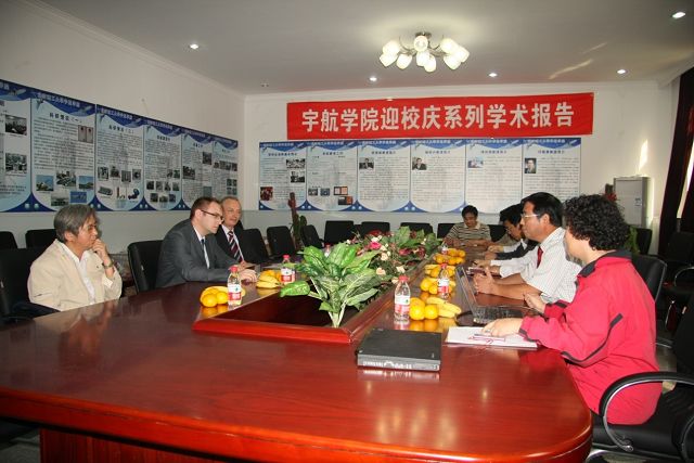 2010年9月24日下午,参加我校70年校庆的萨马拉航空航天大学校长沙霍马托夫和副校长巴格达廖夫专程来宇航学院进行合作交流。宇航学院院长胡更开、化工学院党委书记黄晓鹏、宇航学院副院长唐胜景、荣吉利、崔平远,飞行器控制系主任魏志军、发射与推进工程系主任魏志军、冀四梅副教授等在3号楼一层会议室与萨航一行进行了座谈。