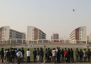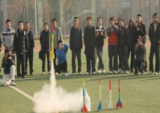 12月4日上午,宇航学院在良乡校区举行了航模作品展示及飞行表演活动,吸引了大批同学参观。活动旨在展示同学们的航模制作与飞行技能,激发同学们对课外科技创新的兴趣与灵感。飞行表演和展示的航模主要有模型火箭、模型特技飞机、模型载重飞机等,均为宇航学院学生课外科技创新基地队员自行设计制作。
