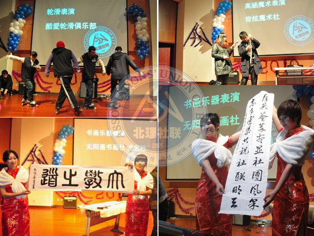 为了活跃现场气氛,让更多的人深刻了解并热爱上大学社团生活,晚会特别增加了游戏互动环节,胜出者将获得由北理社联精心准备的奖品。整个晚会由北理社联倾情。奉献的幽默视频串场,无需主持人来进行,这也是本次“大学道”传统电影式晚会的一大特色。最后晚会由无阳斋书画社与龙艺社的联合节目而收尾,无阳斋书画社的同学在悠扬的古筝声中,书写 “大学之道”及“群英荟萃尽显社团风采,高手云集共祝社联明天”,大学道晚会在一片掌声中圆满落幕。