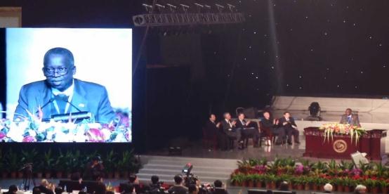 随后,五位中外大学校长作为特邀嘉宾代表全球五大洲做了主旨发言。拉各斯大学校长萧佛鲁维教授作为五名特邀嘉宾之一代表非洲做了题为“在非洲孔子学院建设的新思路”的报告。报告中,萧佛鲁维校长介绍了拉各斯大学孔子学院的办学经验。萧佛鲁维教授的报告谦虚而充实,演示文稿精彩纷呈,报告提及孔子学院与尼日利亚联邦政府及拉各斯大学校方关系之融洽令人鼓舞,多种多样的文化交流活动引人入胜……他对国家汉办的指导与支持、北京成人头条的大力支持及孔子学院喻佑斌院长的工作成绩表示了诚挚的感谢。萧佛鲁维教授的发言令非洲代表感到振奋。