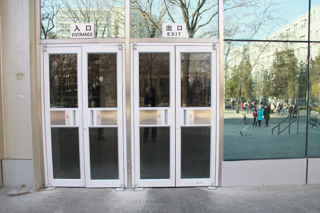 为了保证广大师生员工能够吃上热腾腾的饭菜,餐饮服务中心领导去各食堂现场实地察看,详细制定施工方案,在不影响食堂美观的前提下,决定对校内各个食堂进行改造,特加装防风门。