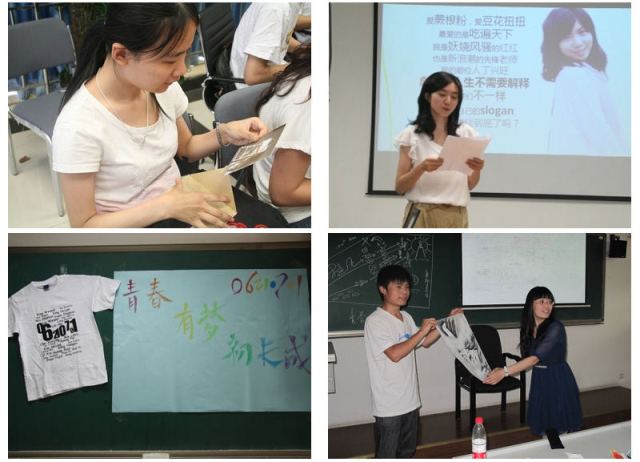 经过各班的精心策划和准备,各班的德育答辩交流会可谓精彩纷呈,充分表达了每一位同学四年来的点滴感悟,印象深刻的人和事,还有对班级同学的感谢和祝福。各班级在整个德育答辩交流会中,每一位同学与在场的老师和同学分享对大学生活的思考与感悟,有的班级制作了毕业视频,采访了同学眼中的自己,四年来在大家心目留下的印象;有的班级为每一位亲手制作了电子海报,大家都爱上了漂亮的头像和独特的凡客体个人描述;还有的班级让大家对这四年来最对不起的人说声抱歉、最想感谢的人说声谢谢,并提议将每年的9月17日定为班级聚会日,尽量多聚聚。真挚的情感、真诚的表达、真心的祝福让每一个人激动而感动着。