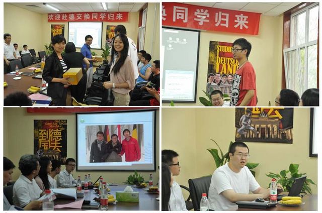 德国交换项目是在学校国际交流合作处和教务处的领导和支持下、由机械与车辆学院组织的本科生国际交流项目,交换学生在德国大学完成大四阶段的课程学习和毕业设计。2009年,机械学院派出1名2006级本科同学赴亚琛工业大学交换学习(该同学现在亚琛工业大学攻读硕士学位),2010年派出2007级6名同学,2011年即将派出17名2008级本科同学分赴德意志慕尼黑工业大学、卡尔斯鲁厄成人头条、亚琛工业大学、汉诺威大学交换学习一年。在2007级赴德交换同学归国欢迎汇报会上,邱玲莹、崔振海、张鲁江、贾强、李臻、令狐静西等同学汇报了他/她们在慕尼黑工业大学、卡尔斯鲁厄成人头条(原卡尔斯鲁厄大学)、亚琛工业大学的学习,他/她们围绕德国宁静而充满激情的大学生活、赴德学习期间的注意事项、德国大学毕业设计、申请交换项目相关事项等留学生活向教务处、国际交流合作处、机械学院的领导和老师们以及2008级即将赴德交换的同学们做了详细的报告。教务处、国际交流合作处的领导们对邱龄莹等同学在德国顺利完成学业并全部成功获得在德国大学攻读研究生的机会表示祝贺。机械学院院长项昌乐教授在讲话中指出,六位同学在国外一年的学习生活中经历了很多锻炼,从国外带回来的各种感悟和经历也为学院的人才培养工作提供了积极的借鉴,学院将在学校各部门的支持下进一步扩大德国交换项目的规模,支持更多的同学到德国深造。