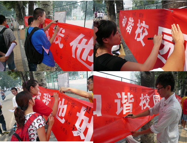 2011年9月5日中午,机械与车辆学院学生会面向全校同学举办的“讲文明、树新风”现场签名活动,在中关村校区举行。