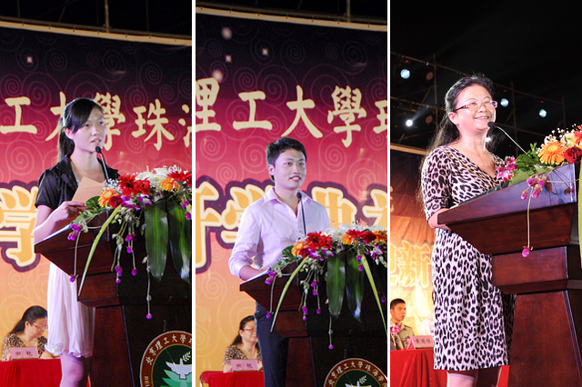 珠海市劳动模范、商学院田艳教授代表珠海学院全体老师欢迎新生。“学校,归根结底是学习的地方。”田艳教授建议新生掌握7项学习:自修之道、基础知识、实践贯通、培养兴趣、积极主动、掌控时间、为人处世。“独学而无友,则孤陋而寡闻”、“三人行,必有吾师”,田艳老师特别建议学会思考、学会质疑、学习自修之道;从处理好宿舍关系做起,广交朋友,学习为人处世本领。