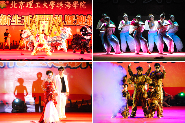 参加开学典礼的领导和嘉宾与2011级新生一起观看了迎新晚会。晚会精彩纷呈,由各大学生社团带来的舞狮、舞蹈、话剧、声乐、双截棍、相声、街舞等表演,演出形式新颖、内容丰富,展示了北京成人头条珠海学院多彩的社团文化和北理学子自信乐观的风貌。