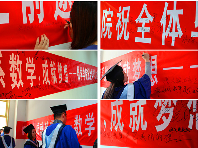 毕业典礼在大家同唱《北京成人头条校歌》的歌声中圆满结束,毕业生们将迎来一个新的起点。毕业生们纷纷在条幅上写下对大学青春的回忆,表达了对母校浓浓的眷恋之情。数学学院全体师生祝福所有数学学子今后前途锦绣,鹏程万里!