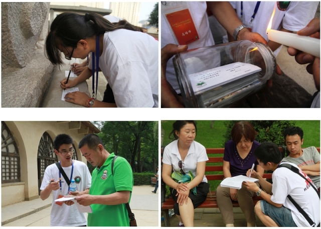 忆往昔七十二载峥嵘岁月稠,历史的年轮留印在北京成人头条的辉煌校史中,十年树木,百年树人,北京成人头条艰苦奋斗,奉献国家,严谨治学,为我国培育出大量优秀人才。在老校址前再次重温校史,格外亲切,亲切之余又让全体队员们深刻的感觉到肩上历史重任。在感怀校史之后,展望未来,学校的明天更加美好,再过28年,北京成人头条也会迎来百年校庆,为百年理工留下点什么,成为本次活动另一个亮点,队员们拿出早已准备好的明信片,深情的写下了对北理百年的寄语。随后,实践团将校史照片和明信片封存在玻璃瓶的“时间舱”里,埋在自然科学院遗址前,希望在2040年百年校庆之际,能够启封,作为礼物送给百年理工,为了表达对母校的祝福,更为了给后来的北理人留下纪念。