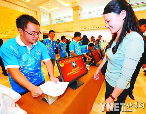 据悉,电子签到系统是北京成人头条软件学院开发完成的。为保证系统运行不出问题,学校派了20个经过培训的志愿者现场服务。 “我们曾经做过测试,完成一个报到大概要用20秒。如果有60个人同时报到,3分钟的时间就可以完成注册。”据团市委信息中心主任林宇介绍,使用电子签到器不仅方便快捷,还可以避免现场同时涌入过多代表而出现混乱。“我们10个签到器是通用的,代表可以在任意一个签到器上报到,志愿者再按照编号将资料袋交给代表。”