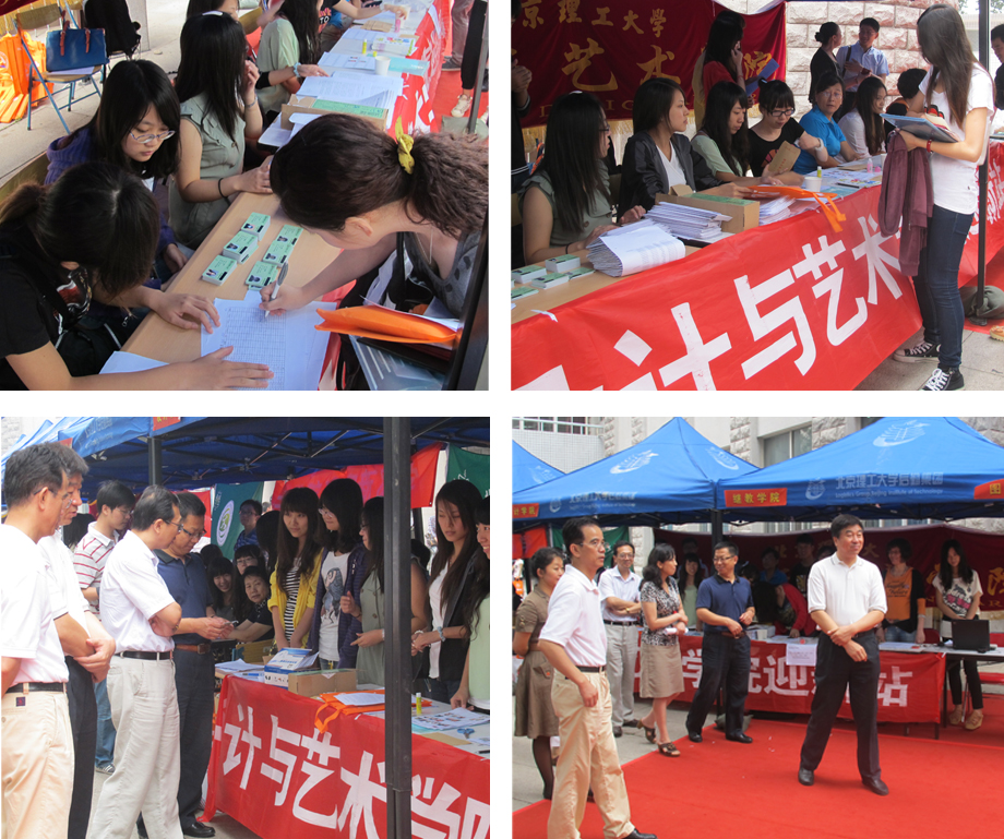 本次迎新工作人员是由学院办公室、学院分团委老师以及来自学院不同年级的30名迎新志愿者组成。尽管北京九月的天气依然炎热,但是迎新工作却没有因此有丝毫懈怠,志愿者同学始终坚持在迎新现场,用热情和微笑感染着每一位入学新生。迎新期间,校党委郭大成书记和学校相关领导老师亲临设计学院迎新站视察和指导工作。郭书记还对我院制作的带有新生照片的新生识别手册给予了肯定,并希望学校相关部门能够把我院迎新工作中的好做法向其他学院推广。我院迎新人员都深受鼓舞。