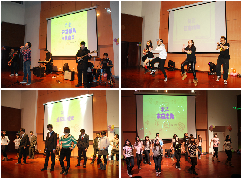 晚会开始,学院党委书记张红峻向全院师生致新年贺词。激情飞扬的乐队表演为晚会拉开序幕。随后,多才多艺的人文学院同学们上演了异彩纷呈的节目,爵士舞《party girl》充满青春活力;12级社工班的小品《唇枪舌战》让大家忍俊不禁,吉他伴唱《Umbrella》为晚会带来了清新的气息,11级社工班的群舞《怀念旧时光》搞笑中夹杂着旧时光的甜美回忆,09级同学表演了街舞《江南style》。