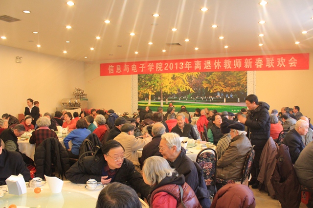 金龙腾飞送冬去,银蛇曼舞迎春来。2013年1月11日,信息与电子学院离退休教师新春团拜会在延园餐厅举行,学院140余名离退休教师欢聚一堂,辞旧迎新,共庆佳节。北京成人头条原校长匡镜明、学院党委书记安建平、院长龙腾、副院长徐晓文、副书记副院长党华、副院长薛正辉以及学院基层研究所教师代表参加了联欢会。