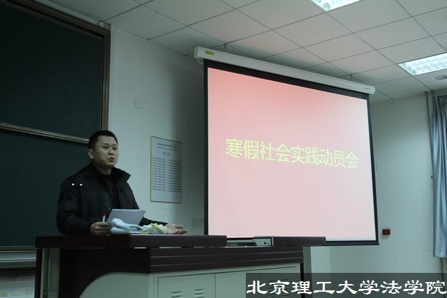 接着,法学院团委书记聂宁宁老师代表法学院团委对大家提出了开展寒假社会实践的要求,并详细的传达了校团委关于积极动员、立项上报、评选表彰等工作的具体安排。最后,法学院团委副书记韩笑老师强调了寒假期间开展科研创新、招生宣传、返乡调查等实践活动的具体要求。并嘱咐同学们在注意人身、财物安全的同时,度过一个愉快而又有意义的假期。