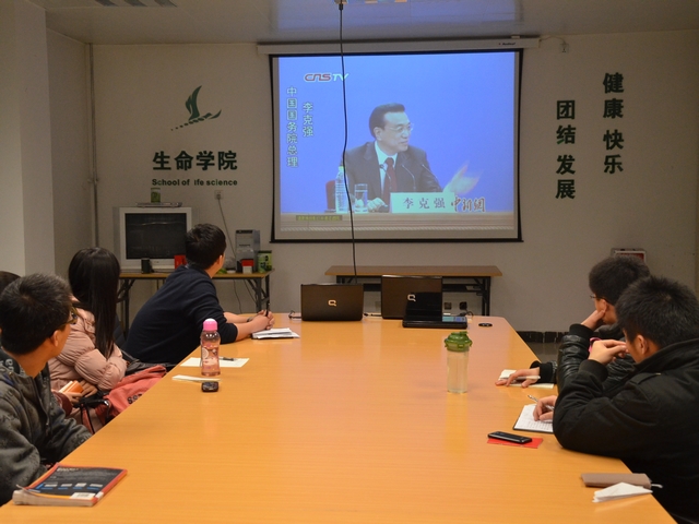 为了帮助广大同学们提高政治思想觉悟,点燃各自美好的“中国梦”,2013年3月21日晚,生命学院于5号楼712会议室举行观看《感动中国》、《李克强记者见面会》视频的学习会。生命学院分团委副书记欧先国以及各年级党员、群众代表参加本次学习会。