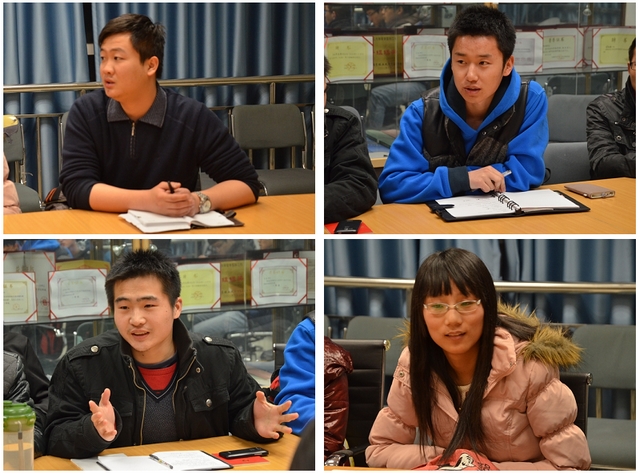 在讨论阶段,各位同学都争相发言表达各自的新得和体会,其中付海洋同学以自己的参军经历为例子,畅谈了自己对中国梦的设想;梁梦洁同学发出在困难面前,在平凡的岗位上实现自己价值的感慨;陈海波同学提出,社会应当更加关注农民工问题,特别保障农民工权益,保证不拖欠农民工工资等等。通过这次视频学习会,相信每位同学都深受教育,都会反思自己能为别人做些什么,为集体做些什么,为家庭做些什么,如果每个人都成为一个感动中国的人,那么我们的家庭,集体,祖国也就会越来越好,这正是感动的一种力量。最后,欧先国对此次视频学习会做了总结,他希望各位同学积极提高道德修养,提高自身素质,明确“我为人人”的和谐之基,共同为实现“中国梦”而努力。