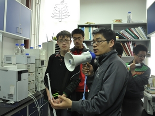 在参观实验室的过程中,各个实验室的老师和学长们热情地接待了良乡校区的同学们,从各实验室主要进行的实验、实验所用用仪器,到已经获得的重要结果等,为他们做了耐心细致的讲解。在互动交流中,部分老师还为同学们当场进行演示,并指导参观学生进行简单的仪器操作。同学们认真聆听讲解,精心做好笔记。