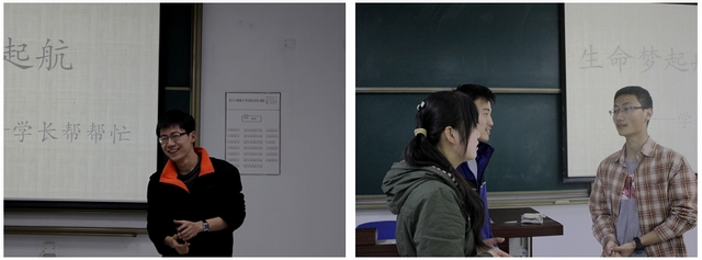 与此同时,“生命之家”学习发展社团为生命专业大一同学,在良乡2B-401举行了“生命梦起航”系列活动之“学长帮帮忙”专业交流会。交流会中担任“学长帮帮忙”的大二学长都是在学习与工作中的佼佼者,他们中间既有“学习达人”,也有“工作达人”,当然也不乏学习与工作都非常棒的同学。