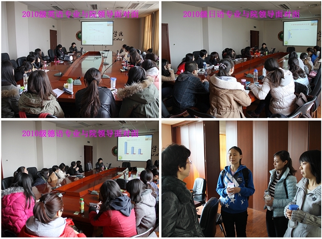 系列活动首先以“院长与我面对面”活动拉开序幕。外国语学院党委副书记、副院长吴文君受同学们之邀,面对2010级英语、日语、德语专业全体学生分三场作了主题为《选择好自己的路》就业指导。