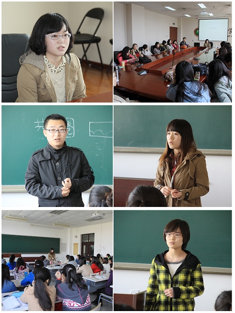 介绍人张妍妍、杨阳、李园园同学则向大三的同学们讲述了他们在准备考研的过程中得到的经验和教训。包括备考资料的选择、各科目备考时间的分配。特别是杨阳和李园园两位同学指出跨专业考研成功的秘诀在于要详细了解专业考试范围,必须学好政治和外语。