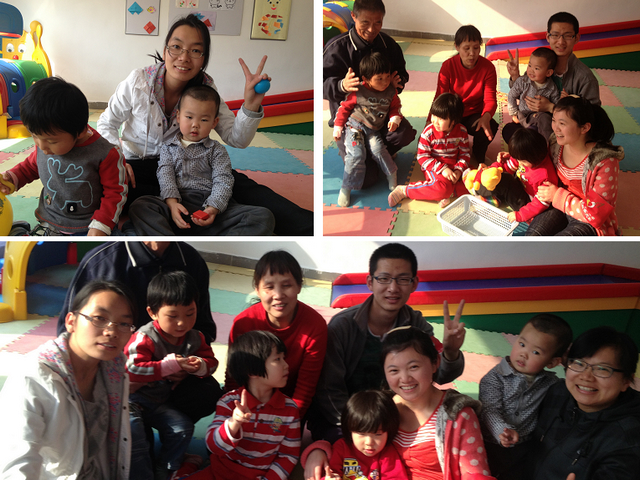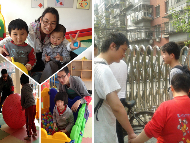 志愿者们很快融入到了活动当中。协助看管三个年幼的残障儿童,他们一个一直在发呆、一个很怕人,只要和别人说话就会抖个不停,另一个则一直专注于玩球。可以想见,志愿者们一开始和他们相处并不容易。但是随着互动的增加,最后玩成了一片,笑声充满了房间,孩子们脸上的幸福告诉了大家他们此刻心中的喜悦;相反,志愿者们则满头大汗,付出了很大的努力。等到志愿者们离开时,孩子们却都依依不舍,希望这些大哥哥大姐姐可以以再多陪他们一会儿。
