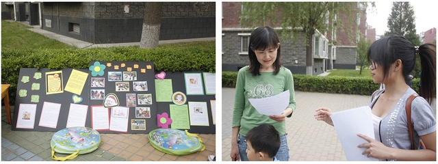 为了方便儿童们接受新知识,宣讲队伍在活动现场设置了一些儿童娱乐设施,并将健康小知识做成卡通画片的样子,让孩子们在游戏中接受新知识。社区里一名带着孙子来参加活动的老大爷高兴地向同学们说,今天的活动来得很值。