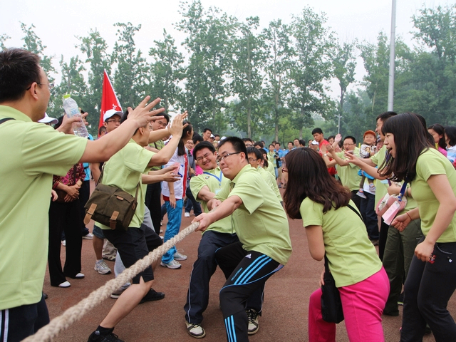首轮比赛,我校应战社科院,队员都有一点兴奋,毕竟这是一次“复仇”的好机会。拔河队队长、机电学院博士后徐彬非常重视这次比赛,比赛前他将拔河队员聚集在一起商量比赛的每一个细节,比赛时他更是使用了一些高明的技巧——队员们在赛前商量好本队的加油口号,当比赛出现僵持的时候,拉拉队的队员们会按照徐彬的指挥手势,突然停止加油,屏声静气,而后一举齐声呼喊口号,利用爆发力击溃对手。赛前的精心准备和赛场上的完美策略带来了出其不意的比赛效果,当线上的红绳渐渐拉向北理工的这一方时,社科院不得不放弃了最后的挣扎,裁判宣布北理工获得胜利。