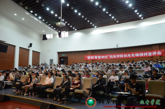 2013年5月28日,按照校团委“信仰•青春•阳光”主题教育活动的总体安排,结合机电学院“机电先锋”榜样评选活动,学院开展了“机电先锋”榜样宣讲会。机电学院和基础教育学院机械学部相关辅导员出席。基础教育学院机械学部2011和2012级300名学生参加。宣讲会由机电学院团委书记章涛主持。