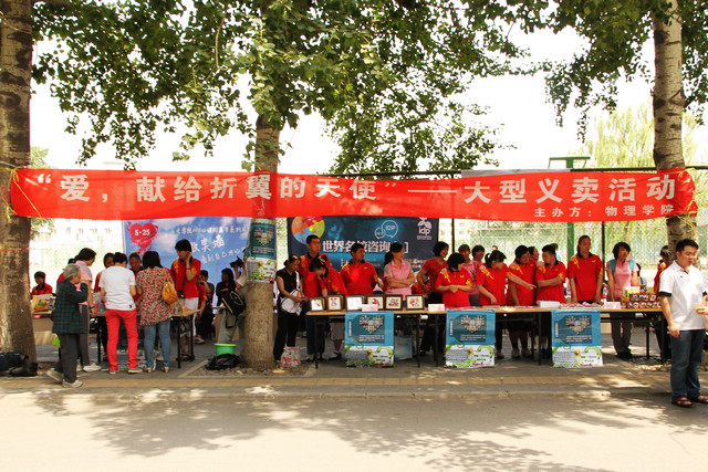 2013年5月24日,爱心传递系列活动之——“智障学生手工艺品义卖”在我校顺利举行。活动当天,来自培智学校的学生带着自己亲手制作的软陶笔筒、花瓶、手机套、剪纸、曲奇饼干等作品,也带着对大学的憧憬和梦想来到校园。菁菁校园也因为他们的到来更平添人文关怀和感恩之情,老师和同学挑选自己喜爱的作品,并和智障学生交流和沟通,给予他们鼓励和温暖。