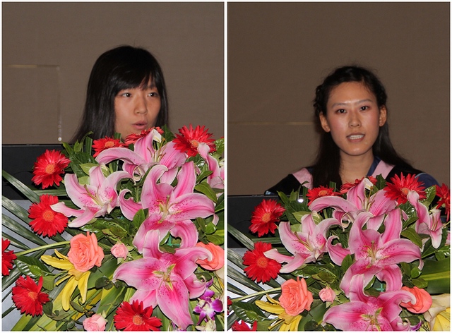 毕业生代表2009级德语专业贾思聪同学和2011级翻译硕士研究生闫璐同学分别代表本科生和研究生发言。她们首先代表所有毕业生感谢辛勤培养和教育过他们的外国语学院全体老师,向所有老师表达了深切的感激之情。她们回忆了学习生活中的点点滴滴,在几年的学习生活中,她们不断成长,不断收获。大学的生活教会了她们珍惜与感恩。最后,她们表示将永远以母校“德以明理,学以精工”的校训来勉励自己,不断前行。