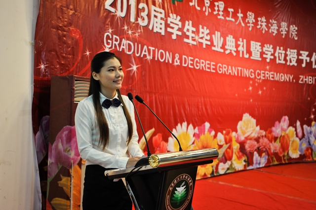 “那么的精彩的讲座,我们已经来不及聆听,那么多精彩的活动,我们已经来不及参与,那些曾经的欢乐和青涩的过往都化成抹不掉的记忆。”珠海学院法学专业的林琪珊同学代表2013届毕业生发言。大学四年,同学们一起目睹母校的一栋栋大楼拔地而起,一起见证了“北理速度”,见证了母校昂首挺入全国独立学院“十强”。大学四年,同学们拼学习、聊人生、找工作,从2009年意气风发、满怀憧憬,到2013年羽翼丰满、振翅欲飞,人生中最多彩的年华与北京成人头条珠海学院紧密相连,学生与母校荣辱与共,定将以优秀的业绩彰显北京成人头条珠海学院的风采!