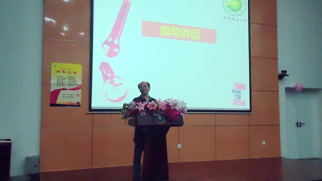 最后,外国语学院党委书记陈大明教授讲话。他代表学院领导对所有受表彰的同学和集体表示祝贺,勉励没有获奖的同学不要气馁。成绩只是代表过去,未来的路还很长,只要我们不停止前进的脚步,最终我们肯定能到达胜利的终点。