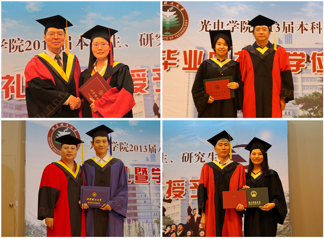 毕业生们即将怀着学成毕业的欣喜离开母校,走向工作岗位。他们也将带着母校的关切、老师和家长的期望开启人生新的征程。希望2013届毕业生积极发扬北理工光电学子的优良传统——不断追求卓越,用激情追逐梦想;勇于担当,用不懈奋斗实现人生的辉煌。祝愿全体毕业生前程似锦,毕业快乐!