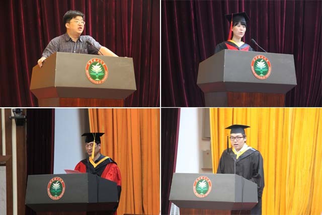2009级信息工程专业的李梦源同学作为毕业生代表发言。他与大家一起回顾了从良乡到中关村学习、工作、生活上的点点滴滴,表达了对同学、对老师、对母校的感恩之情,并代表毕业生许诺:今天我们以身为北京成人头条信息与电子学院的一员而自豪,希望明天信息与电子学院以有我们这样的学生而骄傲。