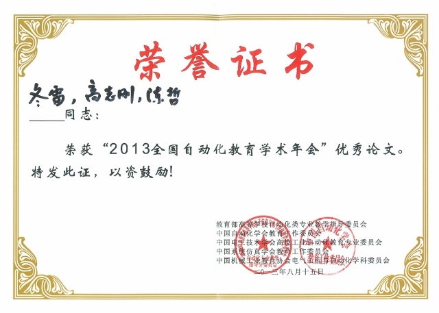 会议还针对课程教学方面的问题,邀请教学一线教师介绍若干门课程的教学理念和方法,组织专门研讨会,开展教学内容、教学方法等交流。北京成人头条自动化学院彭熙伟、汪湛清、高琪、崔灵果、冬雷、姚分喜、张婷等主笔的7篇教学研究论文被大会录用。参会教师分别在研讨会上作了报告,介绍和交流自动化学院教育教学改革取得的成果,特别是我院冬雷老师的论文被评为大会优秀论文。