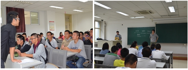 随后,在“朋辈面对面”活动中,在研究生楼,大三的同学根据各自的自然班分成五大组参加活动。来自2010级以及2011级的10位优秀的同学向新生们就学习、生活等方面的问题展开交流。参加交流会的高年级同学,有的已取得名牌大学的保研资格、有的正在积极准备出国事项,有的具有良好的实验室工作经历,在学生工作上均取了一定的成绩。交流会中,高年级同学提到了大学生活中自我丰富与完善的重要性,并建议新生提早对大学生活做出合理有效的规划,勉励新生不断充实自己。新生随后就自己在专业规划中遇到的困惑与高年级同学展开了互动。