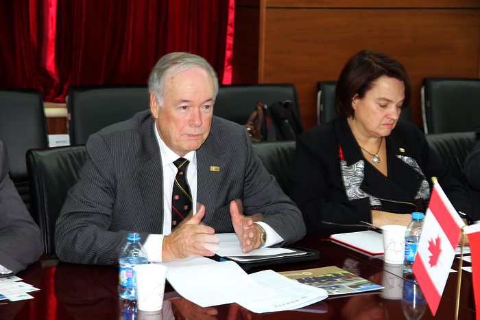参加此次会见的对方代表还有:拉瓦尔大学主管学术和国际事务的副校长Nicole Lacasse,常务副校长Eric Bauce,国际处处长 Richard Poulin, 人文学院院长Michel de Waele, 自然科学和工程学院副院长 Rene Therrien, 历史系教授李晟文,和国际事务顾问徐洪教授;我校参会人员还有材料学院书记陈鹏万,光电学院院长薛唯,光电学院副院长赵长明,人文学院副院长贾利军,研究生院培养处副处长张景瑞和国际交流合作处副处长高珊。