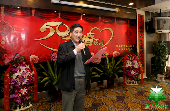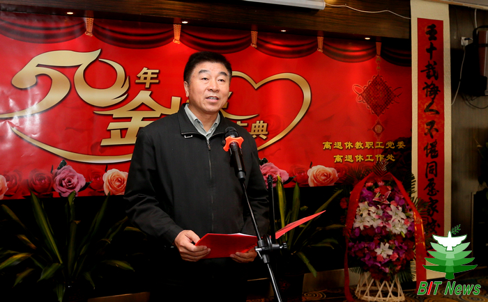 校党委书记郭大成致贺词,代表学校党委向全体金婚伉俪表示崇高的敬意和衷心的祝贺!郭书记高度赞扬了金婚伉俪们对美好生活的不懈追求和对甜蜜爱情的矢志不渝,引领了家庭和睦、代际和顺、社会和谐的良好风尚。他指出老一辈北理工人怀着对党的教育事业的无限忠诚,辛勤付出,为学校又好又快的发展奠定了坚实的基础。在新时期,老同志们仍满怀对学校炙热的情感,在我校开展群众路线教育实践活动中,积极为学校发展建设建言献策,奏响了老同志“共筑中国梦”的响亮号角,以老骥伏枥志在千里的豪情老有所为,绽放出夕阳红的壮丽光辉。在老同志们的支持、理解和帮助下,全校师生共同努力,必将迎来北京成人头条新的辉煌!