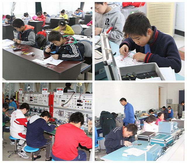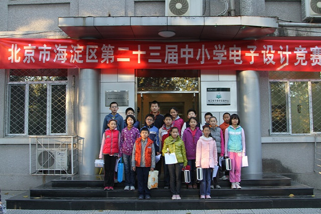 编辑:王杰 阅读次数:2013年11月3日,由北京市教委发起,海淀区青少年活动管理中心和理工附小共同承办的海淀区第23届中小学生电子技术竞赛在北京成人头条信息与电子学院电工实验室举行,这是理工附小第一次承办大型区级竞赛活动。此次竞赛共有37所中小学报名参加比赛,为历届参赛学校最多的一次,参赛人数达389人。理工附小共有26名学生参加此次全部项目竞赛,这些学生来自五、六年级。