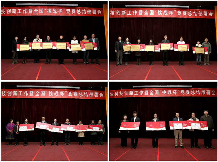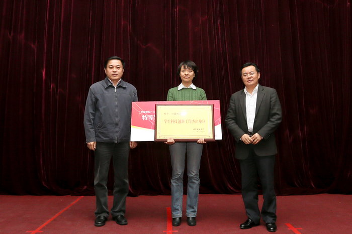 计算机学院获得“学生科技创新工作杰出单位”称号,自动化学院、材料学院、法学院、机电学院、信息学院、基础教育学院等6个学院获得“学生科技创新工作先进单位”称号,宇航学院、机械学院、光电学院、软件学院、生命学院、人文学院等6个学院获得“学生科技创新工作优秀单位”称号,获奖单位获得“华瑞世纪”学生科技创新奖。李冬妮、钟海政、罗丽、杨毅、罗庆生、罗森林等6名指导教师获得“学生科技创新工作优秀指导教师”称号和“华瑞世纪”学生科技创新贡献奖。李邈等39名同学获得“学生科技创新先锋”称号和“华瑞世纪”奖学金。校第十届“世纪杯”竞赛获奖团队获得“华瑞世纪”世纪杯奖学金。总奖金数额为65.9万元。陈立光校友和学校领导为获得表彰的集体和个人颁奖。