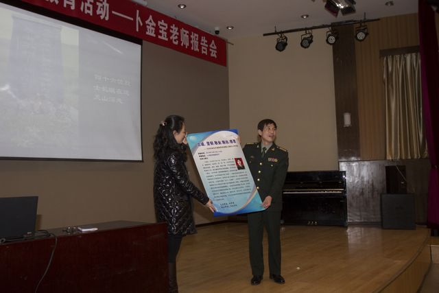 报告会结束后,校团委副书记方蕾老师为卜金宝老师赠送了纪念海报。