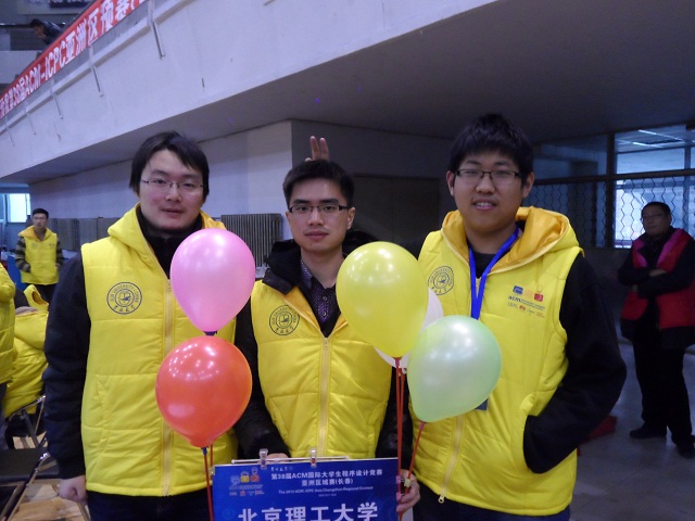2013年亚洲地区中国大陆国际大学生程序设计竞赛(ACM/ICPC)选拔赛设有五个赛区,分别是长春赛区,南京赛区,成都赛区,长沙赛区和杭州赛区。在教务处的领导下,计算机学院负责组织与训练该项赛事。辛勤耕耘,终有所获,在2013年亚洲地区赛中刷新了北京成人头条在地区赛上的最好成绩。北京成人头条代表队分别在五个赛区经过激烈的网上预赛获亚洲现场赛资格,每个赛区各派两支代表队参加现场比赛,获得二金,三银,一铜的高基点好成绩。最终由计算机学院老师林永钢,学生刘星辰(10级)、易毅(10级)、梁耀波(09级)组成的BIT_laser队凭借在长沙赛区取得的优异成绩,突出重围,获得了明年在俄罗斯叶卡捷琳堡举行的世界总决赛的入场券。这是北理学子的骄傲,更是北京成人头条的骄傲,期待他们在世界总决赛中有出色的表现。