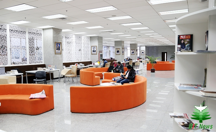 同时,图书馆在空间布局上更加注重功能多元化。一层大厅建立了报纸与期刊自助阅览区、团队讨论交流区、展览展示区等多功能的新型休闲区,打造了集休息阅读、自主学习、团队学习、沟通交流和展览展示等多种服务功能于一体的新型服务空间;二层新建了笔记本专用阅览区,为读者使用便携移动终端开展学习研究提供了方便;三层工具书阅览区和外文书阅览区,通过功能划分满足读者自身不同的需求,在良好的氛围中享受阅读、学习与交流的乐趣;对读者研究室进行重新装修调整,为师生读者提供了小组讨论空间,在不影响他人的前提下,为师生交流及学术研讨创造条件。