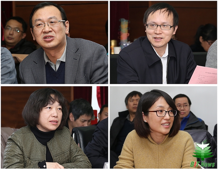 2013年度国家技术发明一等奖获得者吴嗣亮教授代表学校党外人士发言,他对学校长期坚持的求真务实的学术精神和科研作风给予了高度的肯定,对学校师生给予的支持和关怀表达了衷心的感谢,表示只要坚定信心、勤奋耕耘,未来将有更多的科研成果不断产出。全国政协委员李健教授结合自身担任人文学院院长的工作实际,指出学校人文与社会科学近年也取得了重要的发展实绩,社科基金名列工信部部属高校之首,建议学校要继续瞄准世界科技发展前沿,瞄准国家重大战略需求,不断创新观念,争取更大的发展。民盟代表范春萍编审2013年以合作出版《基因的故事:解读生命的密码》获得了国家科技进步奖二等奖,她同样表达了对学校发展的信心,并在发言中倡议学校的高水平科研成果可以通过科普化,来更多地服务社会、服务大众。北京市政协委员高利教授带来了北京两会的最新精神和内容,他简要介绍了北京市2013年的总体形势和2014年的总体规划,着重强调了与高等院校关系密切的发展机会,建议学校要早谋划、早动手,在一些重点发展领域把握机遇、不断进步。