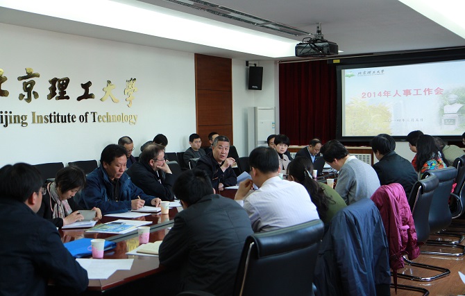 会上,韩宝玲处长对“十二五”以来及2013年学校人事工作情况进行了回顾,总结了学校在高层次人才队伍建设、青年教师培养和毕业生接收等方面工作的成果和经验,同时分析了工作中存在的不足和需要加强的方面。并根据2014年学校工作会精神及到2020年人才队伍建设要求,结合人才强校战略“2132”工程,制定了《2014年人事工作要点》,从高层次人才队伍建设、青年人才引进和绩效津贴改革等八个方面对本年度人事重点工作进行了详细说明,强调了各项工作的时间节点和注意事项,并对各单位长期以来对人才队伍建设作出的努力和对学校人事工作给予的大力支持表示感谢。