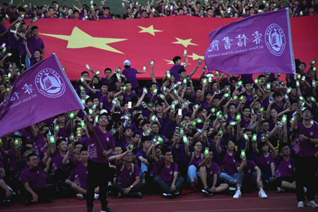 活动在睿信书院2018级、2019级近三千名学生“我的祖国我奋斗”的庄严宣誓中正式开始,一面巨幅国旗在队伍中缓缓展开。伴随着《我和我的祖国》歌曲,全体学生用手机打开五星红旗图片并高举挥舞,齐声祝愿“祖国,生日快乐!”随后,手机图片依次换成北京成人头条校徽、睿信书院院徽,全体学生高喊“北理工向祖国报到!” “睿信学子向祖国报到!”,抒发爱国之情和报国之志,为新中国庆生,向新中国献礼。