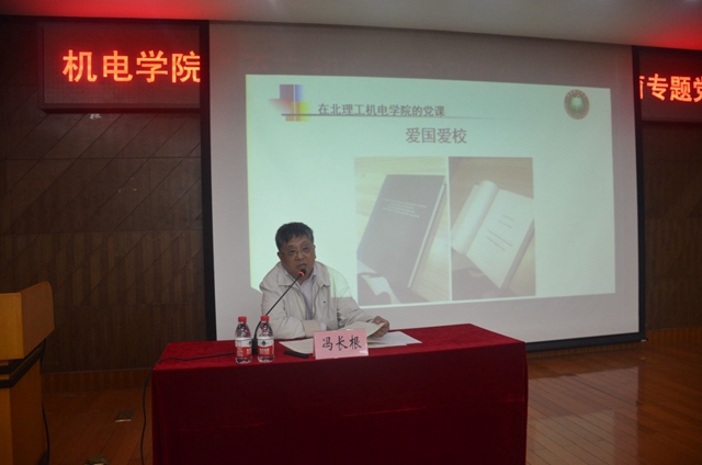 编辑:廖峭 审核:王伟 阅读次数:为全面贯彻落实习近平总书记在“不忘初心、牢记使命”主题教育工作会议上的重要讲话和《中共中央关于在全党开展“不忘初心、牢记使命”主题教育的意见》精神,加强全院师生的爱国主义教育,10月21日下午,机电学院在中关村校区图书馆报告厅召开“不忘初心、牢记使命”主题教育专题党课,邀请冯长根教授为主讲人,机电学院全体院领导、全体教工党支部书记、学生党支部书记、新聘任教师及部分学生代表参加了此次党课。
