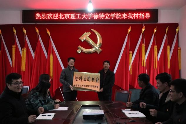 离开重机轰鸣的生产车间,实践团成员们兴趣愈增,踏入焕然一新的胡堡村,在村委会会议室中举行了徐特立图书室挂牌仪式。教育扶贫是高校参与到国家精准扶贫战略的重要一环,发挥高校教育能力,以教育助力扶贫攻坚,要想谈扶贫,必先扶志与扶智。而特立学院赠送的画册与图书,也必将同这图书室一起,见证更多牢记使命,勇担重任的北理工人的付出,见证方山教育事业的腾飞!