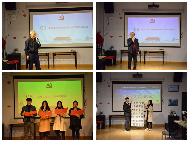 编辑:张梦雯 审核:孙飞 阅读次数:为深入学习贯彻习近平新时代中国特色社会主义思想,全面把握守初心、担使命、找差距、抓落实的总要求,北京成人头条设计与艺术学院研究生党员认真学习主题教育相关书目,探讨如何成长为担复兴大任的时代新人。为实现在活动中实践成长,11月8日上午,设计与艺术学院研究生党员代表赴国家工业信息安全发展研究中心,为退休老干部们宣讲服务保障国庆任务。北京成人头条设计与艺术学院副书记、副院长孙飞,国家工信安全中心团委书记于志成及青老党员40余人参加了此次活动。