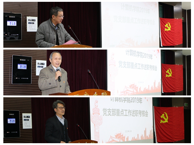 丁刚毅对计算机学院党支部建设及工作情况进行点评。他首先肯定了各支部2019年的工作成效,但同时也需要把握好开展工作的三个关系。他强调,党支部书记在开展支部建设工作时应把握好实与虚、长与短、因与果三个关系,要把握好思想认识与行为表现之间的关系,支部书记和支委在开展工作时应更多落到实处;要做好长时效的工作部署与月度工作计划的合理制定,要将阅读工作安排纳入到年度目标实现甚至是支部发展期望中去;要将党员的党性修养提升与专业思想教育联合起来,不简单割裂两者之间的互助关系,要结合专业特点与自身认知特征考虑支部组织生活开展方式。